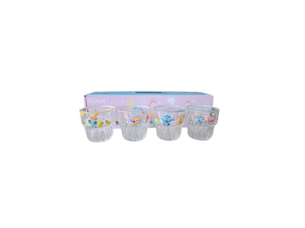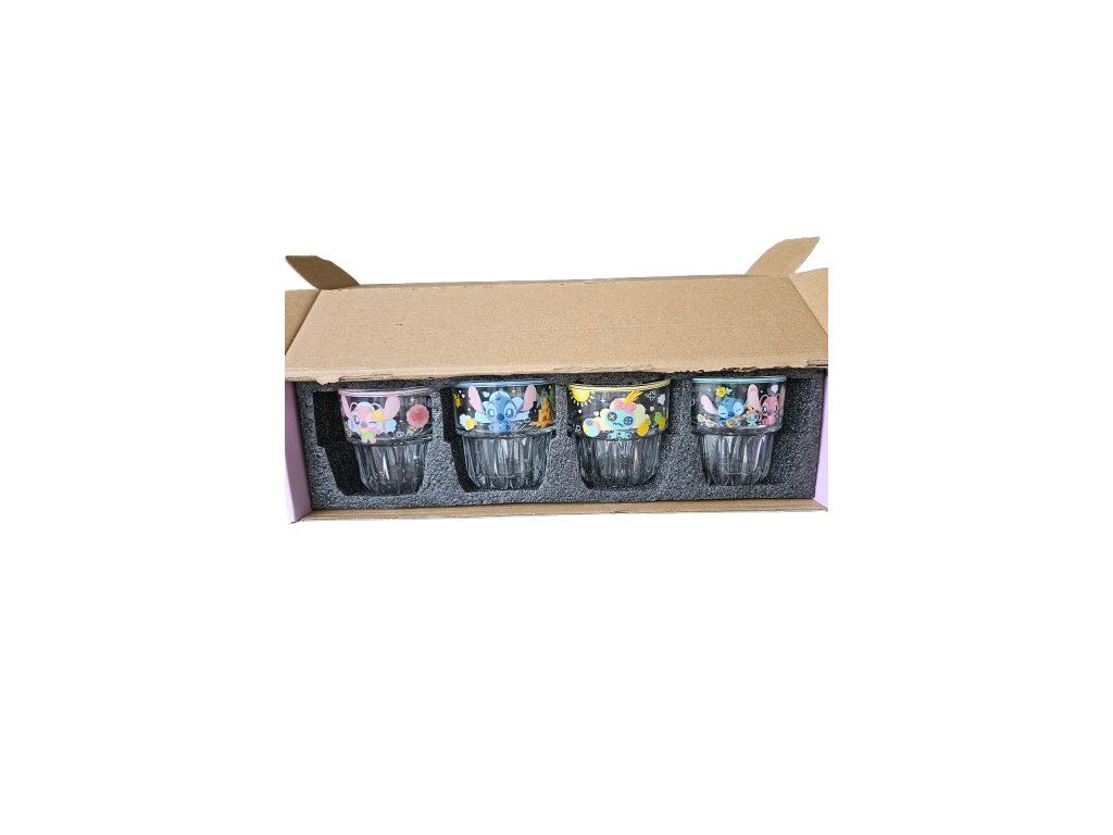 Sada 4ks sklenic s potiskem postaviček Lilo a Stitch v dárkové krabici stejného motivu.