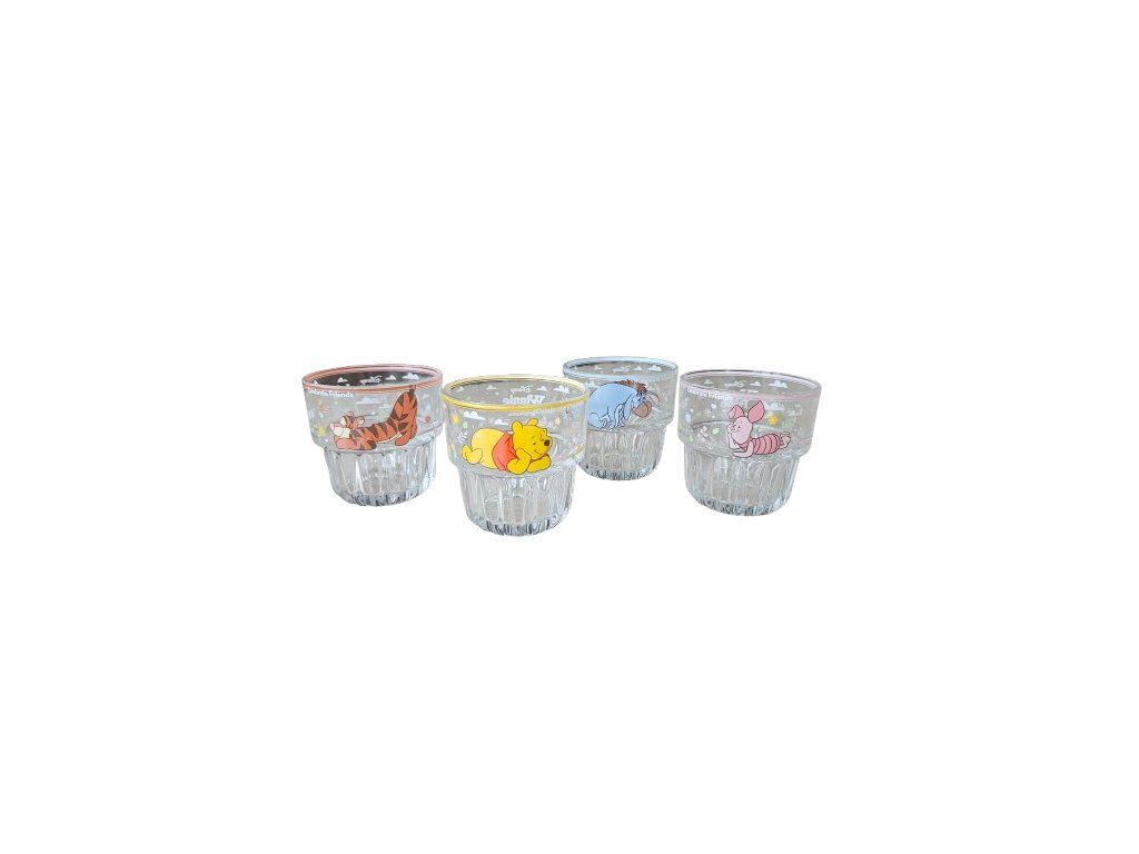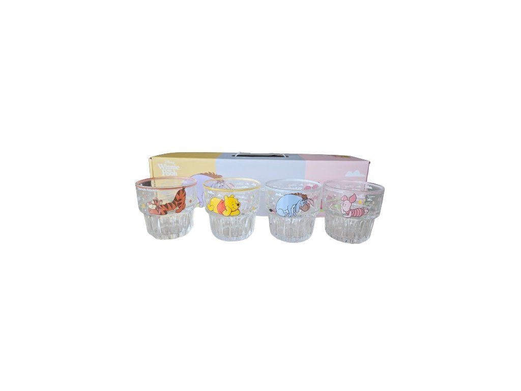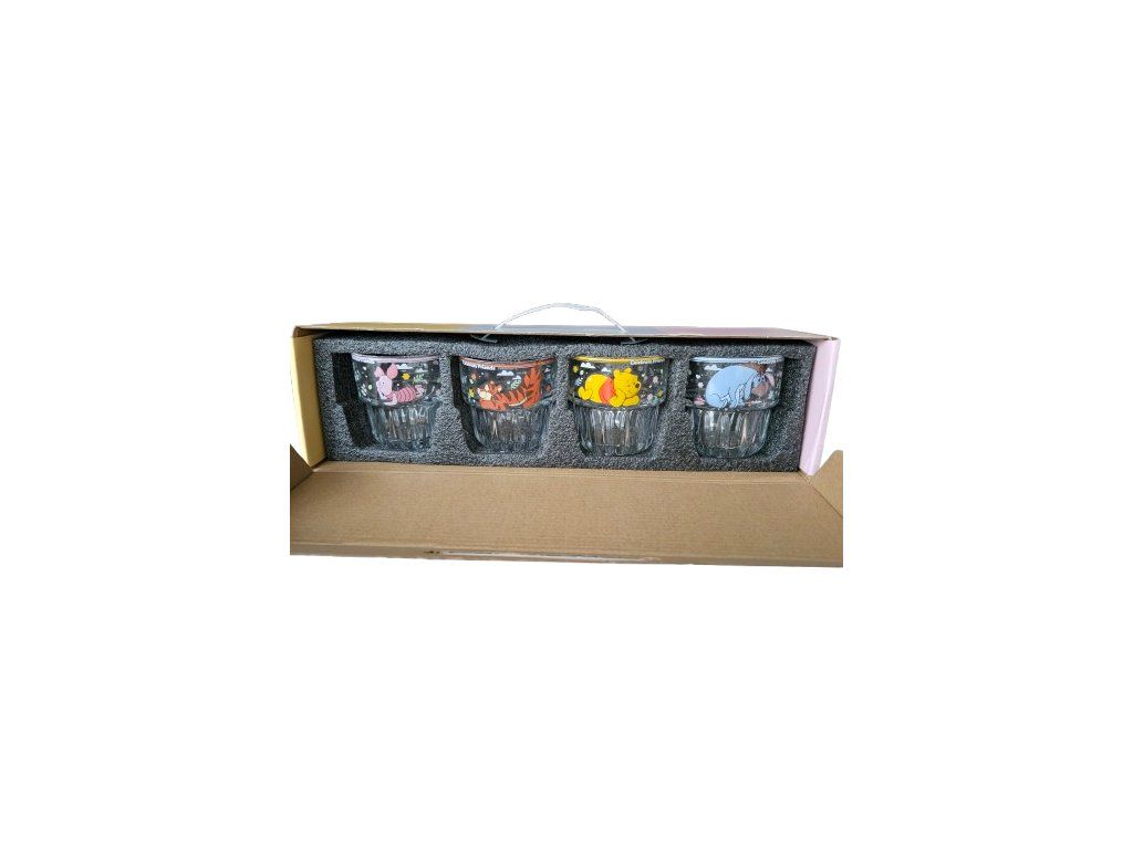 Sada 4ks sklenic s potiskem postaviček z pohádky Medvídek Pú v dárkové krabici stejného motivu.