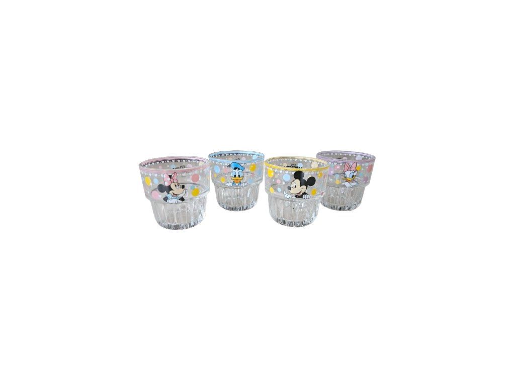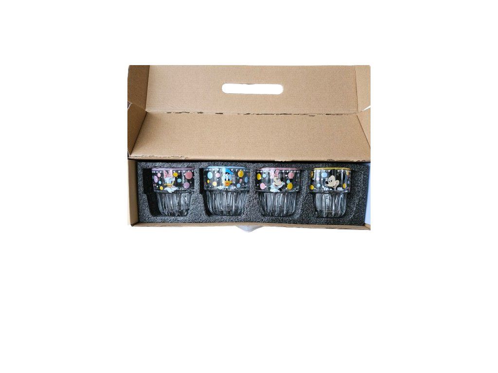 Sada 4ks sklenic s potiskem postaviček Mickey Mouse a Minnie v dárkové krabici stejného motivu.